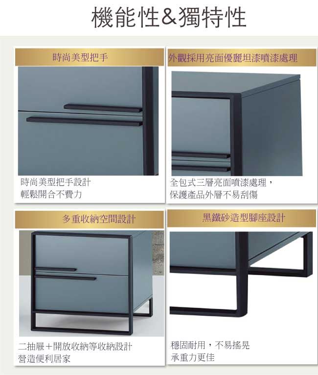 商品介紹 | 【綠家居】西雅達 現代風1.7尺二抽床頭櫃(左&右二向可選) 左&右二向可選+現代簡約風格+安心材質製造,整體採用防潮MDF板材+黑鐵砂腳座+五金滑軌結構等安心材質製造,產品外層採用防潮亮面噴漆處理搭配二抽屜+開放式桌面收納等收納空間設計,全由專人配送到家,專業安心服務,替你省下更多時間! 【商品特色】 左&右二向可選+現代簡約風格+安心材質製造,使用放心+搭配居家更便利 採用防潮MDF板材+黑鐵砂腳座+五金滑軌結構等安心材質製造 產品外層採用防潮亮面噴漆處理 搭配二抽屜+開放式桌面收納等收納空間設計 此商品不需要DIY組立,此商品為組立後之成品 品質保證、專業設計、貼心服務 全由專人配送到家,專業安心服務,替您省下更多時間 |