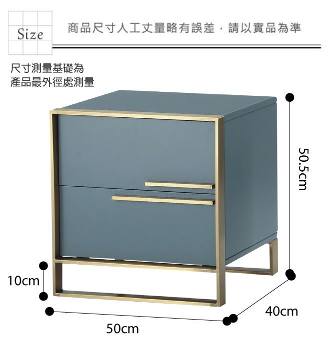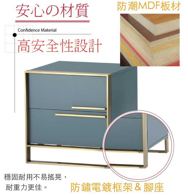 材質 | ◆產品名稱: 【綠家居】卡西達 現代風1.7尺二抽床頭櫃(左&右二向可選) 尺寸:(寬)50x(深)40x(高)50.5公分 ◆材質: 材質:防潮MDF板材+防鏽電鍍腳座+五金滑軌結構 噴漆:防潮亮面噴漆處理