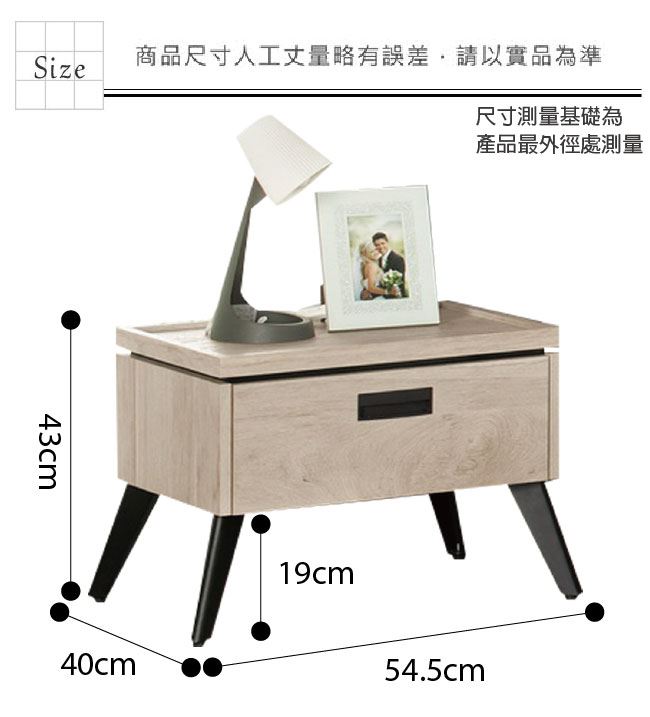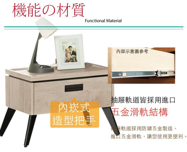 材質 | ◆產品名稱: 【綠家居】薇妮特 橡木紋1.8尺單抽床頭櫃 產品尺寸: 尺寸:(寬)54.5x(深)40x(高)43/公分 ◆材質: 材質:防蛀木心板+黑鐵砂腳座 材質:五金滑軌結構 塗漆:優利坦全包式耐磨噴漆處理