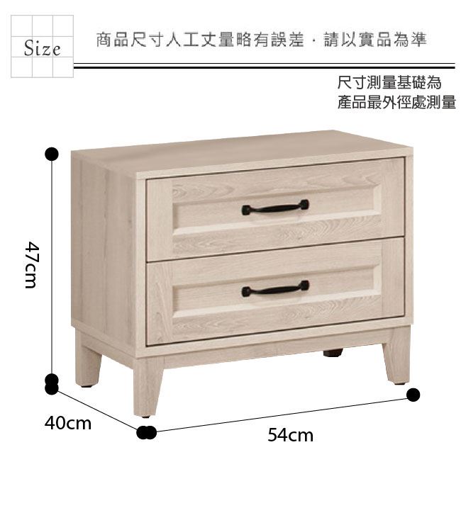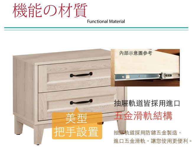 材質 | ◆產品名稱: 【綠家居】馬拉提 淺橡1.8尺二抽床頭櫃 產品尺寸: 尺寸:(寬)54x(深)40x(高)47/公分 ◆材質: 材質:防蛀木心板+防潮耐磨腳座 材質:五金滑軌結構 塗漆:優利坦全包式耐磨噴漆處理