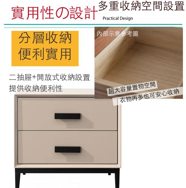 商品 介紹 | 【綠家居】哥倫 雙色1.7尺二抽床頭櫃/收納櫃 時尚雙色系+現代簡約風格+安心材質製造,整體採用防潮MDF板材+五金滑軌結構+防鏽黑漆五金腳座等安心材質製造,產品外層採用防潮亮面噴漆處理搭配採用二抽屜+開放式收納層格等收納空間設計,全由專人配送到家,專業安心服務,替你省下更多時間! 【商品特色】 時尚雙色系+現代簡約風格+安心材質製造,使用放心+搭配居家更便利 採用防潮MDF板材+五金滑軌結構+防鏽黑漆五金腳座等安心材質製造 產品外層採用防潮亮面噴漆處理搭配採用二抽屜+開放式收納層格等收納空間設計 此商品不需要DIY組立,此商品為組立後之成品 品質保證、專業設計、貼心服務 全由專人配送到家,專業安心服務,替您省下更多時間 |