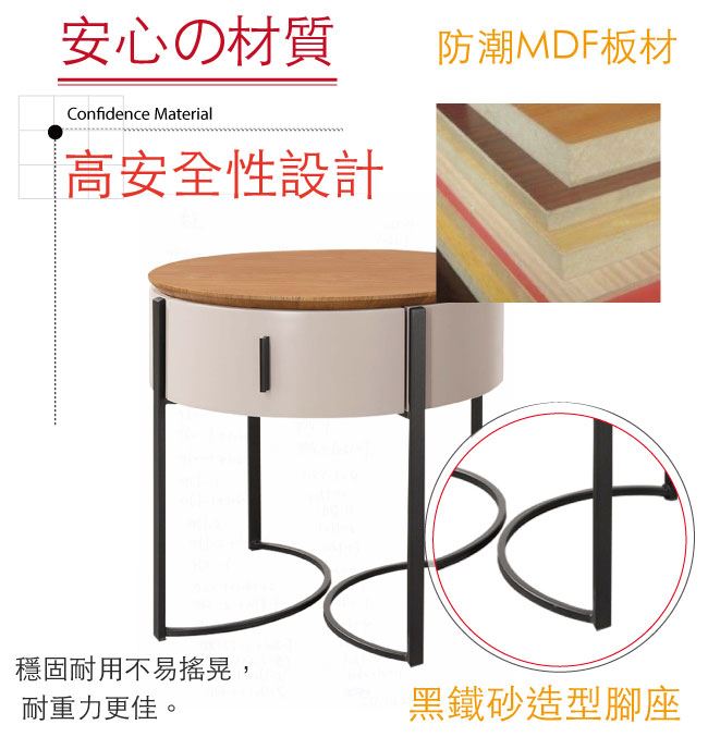 材質 | ◆產品名稱: 【綠家居】米哥倫 雙色1.7尺單抽床頭櫃/收納櫃 尺寸:(寬)50x(深)50x(高)50/公分 ◆材質: 材質:防潮MDF板材外貼實木皮+五金滑軌結構+防鏽黑漆五金腳座 噴漆:防潮耐磨&亮面噴漆處理
