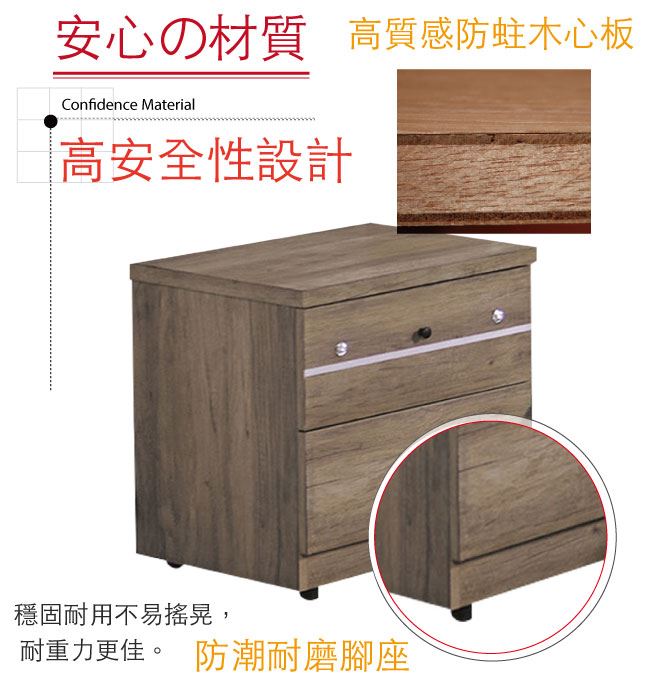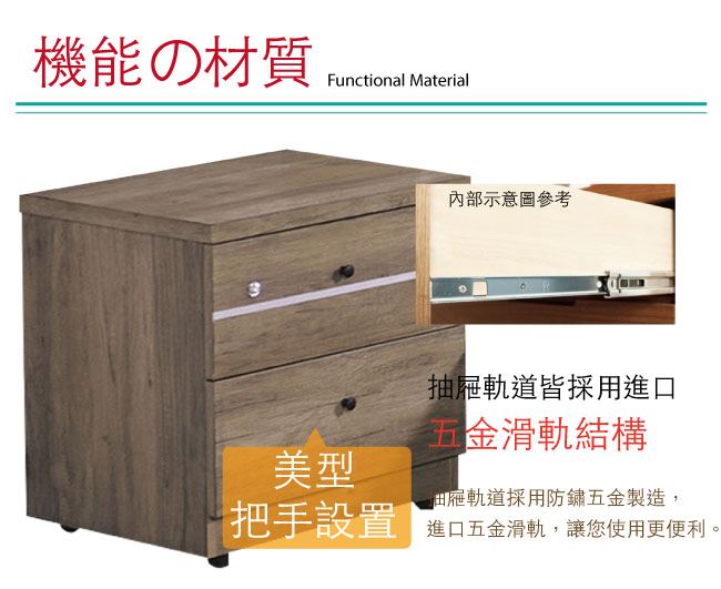 材質 | ◆產品名稱: 【綠家居】查莫 時尚1.6尺二抽床頭櫃/收納櫃 尺寸:(寬)47x(深)40x(高)46/公分 ◆材質: 材質:防蛀木心板+五金滑軌結構+防潮耐磨腳座