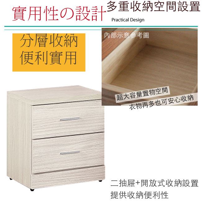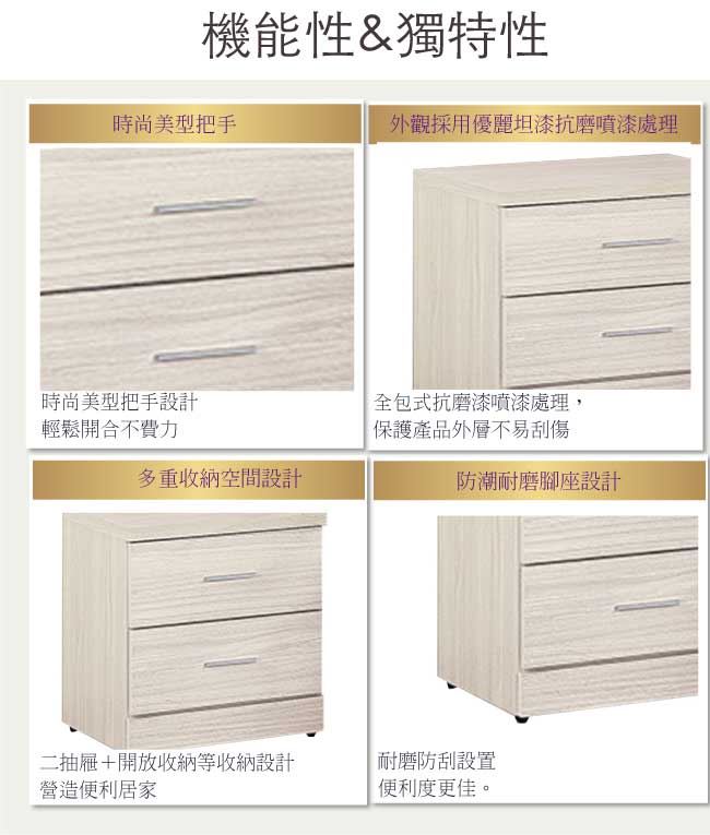 【綠家居】福瑞 梣木紋1.6尺二抽床頭櫃