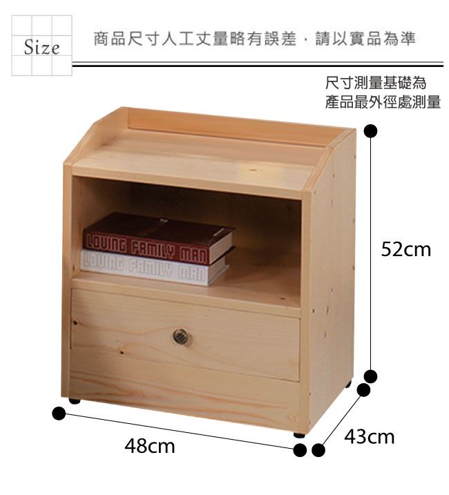 材質 | ◆產品名稱: 【綠家居】歐萊 現代1.6尺實木單抽床頭櫃 產品尺寸: 尺寸:(寬)48(深)43x(高)52/公分 ◆材質: 材質:松木實木+五金滑軌結構 塗漆:優利坦全包式耐磨噴漆處理