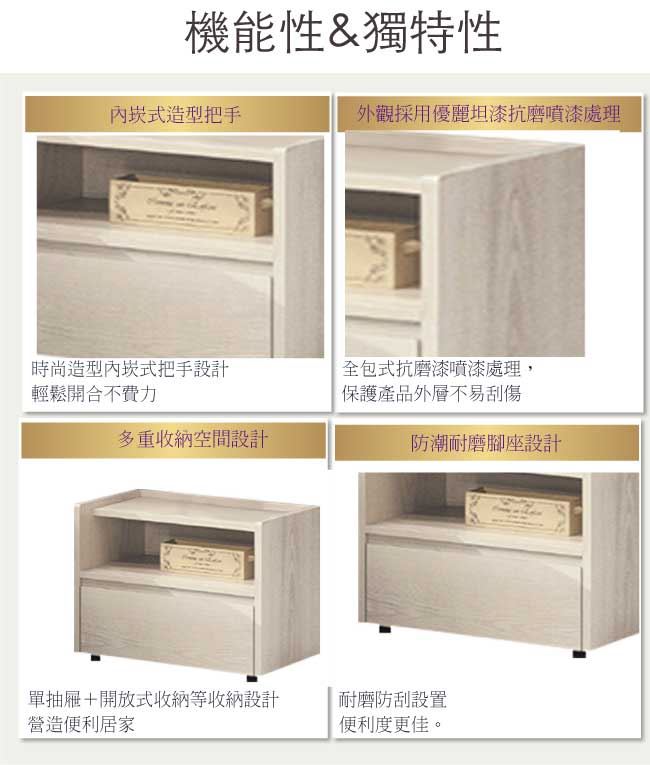 - ◆產品名稱:【綠家居】凱文1.6尺單抽床頭櫃