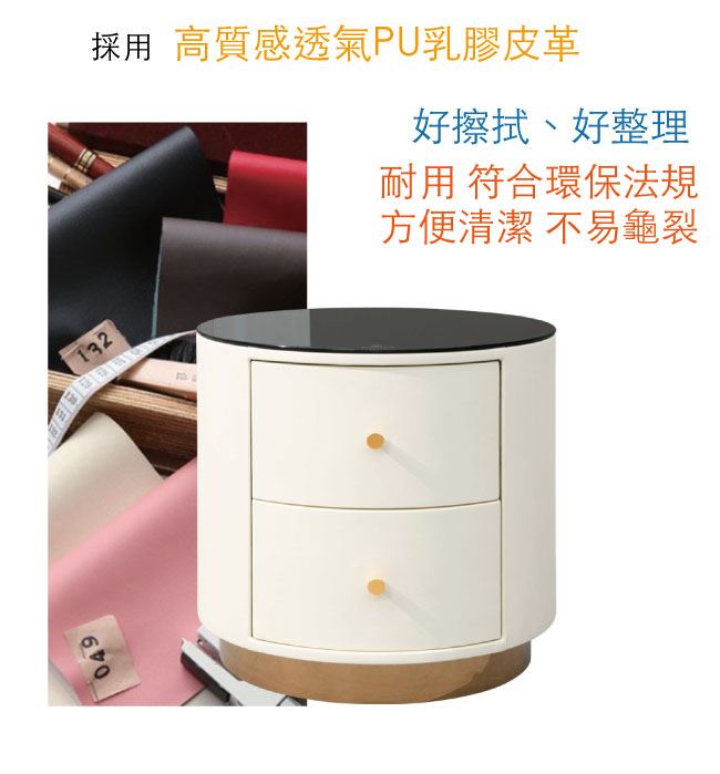 材質 | ◆產品名稱:【綠家居】魁北克1.6尺皮革玻璃床頭櫃 尺寸:(寬)46.5x(深)46.5(高)45/公分 ◆材質: 材質:防潮MDF板材+防鏽金漆底座+五金滑軌結構+6mm強化黑玻桌面+透氣PU皮革 噴漆:防潮亮面噴漆處理
