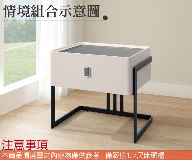 商 品 介 紹 | 【綠家居】阿迪斯1.7尺玻璃單抽床頭櫃 時尚白色系+現代簡約風格+安心材質製造,整體採用防潮MDF板材+防鏽黑漆腳座+緩衝式滑軌結構+6mm強化黑玻桌面等安心材質製造,產品外層採用防潮亮面噴漆處理搭配採用單抽屜+開放式收納等收納空間設計,全由專人配送到家,專業安心服務,替你省下更多時間! 【商品特色】 時尚白色系+現代簡約風格+安心材質製造,使用放心+搭配居家更便利 採用防潮MDF板材+防鏽黑漆腳座+緩衝式滑軌結構+6mm強化黑玻桌面等安心材質製造 產品外層採用防潮亮面噴漆處理 搭配採用單抽屜+開放式收納等收納空間設計 此商品不需要DIY組立,此商品為組立後之成品 品質保證、專業設計、貼心服務 全由專人配送到家,專業安心服務,替您省下更多時間