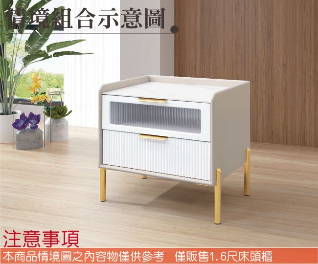 【綠家居】厄利1.6尺岩板二抽床頭櫃