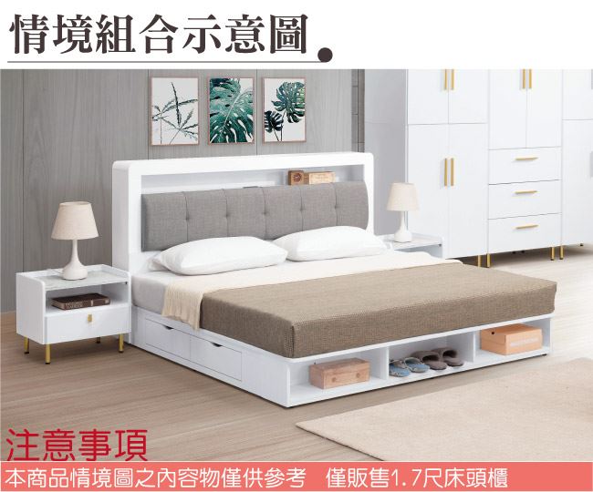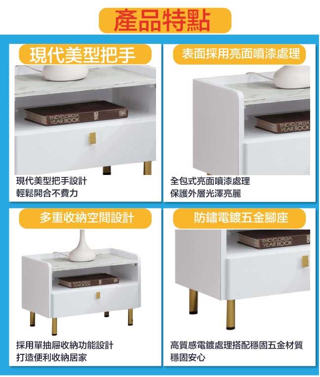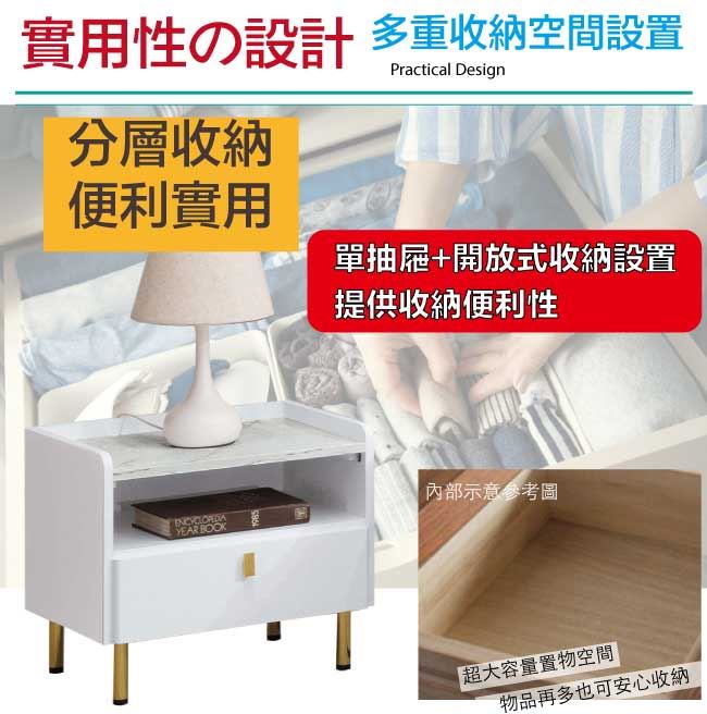 【綠家居】溫荷克輕奢白1.7尺單抽床頭櫃