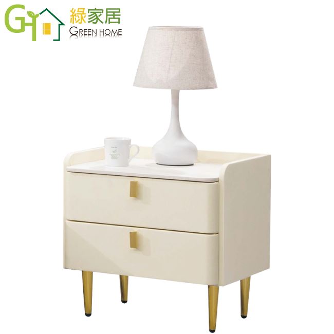 【綠家居】蒙羅1.7尺皮革岩板二抽床頭櫃