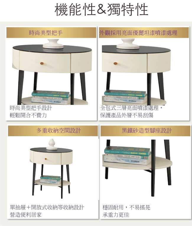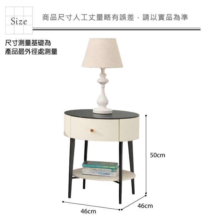 材質 | ◆產品名稱:【綠家居】哈爾格薩1.5尺玻璃單抽床頭櫃 尺寸:(寬)46x(深)46(高)50/公分 ◆材質: 材質:防潮MDF板材+防鏽黑漆腳座+五金滑軌結構+6mm強化黑玻桌面 噴漆:防潮亮面噴漆處理 |