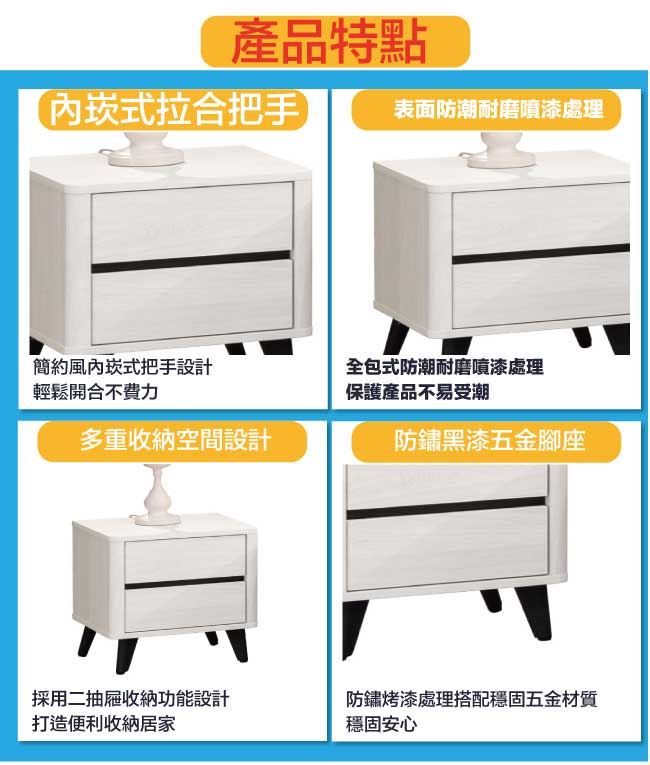 【綠家居】聖但尼1.3尺二抽床頭櫃