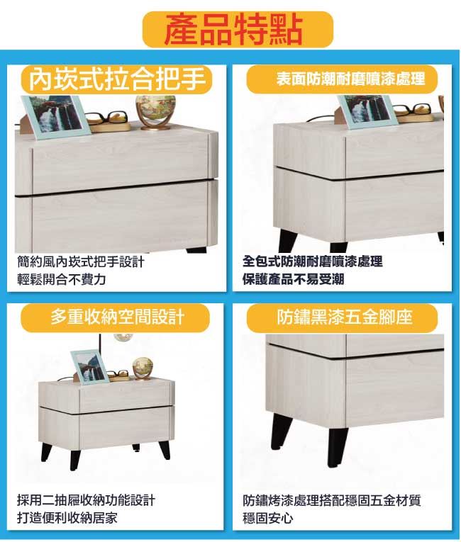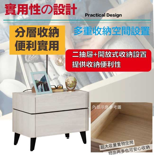 【綠家居】卡摩帝1.7尺二抽床頭櫃
