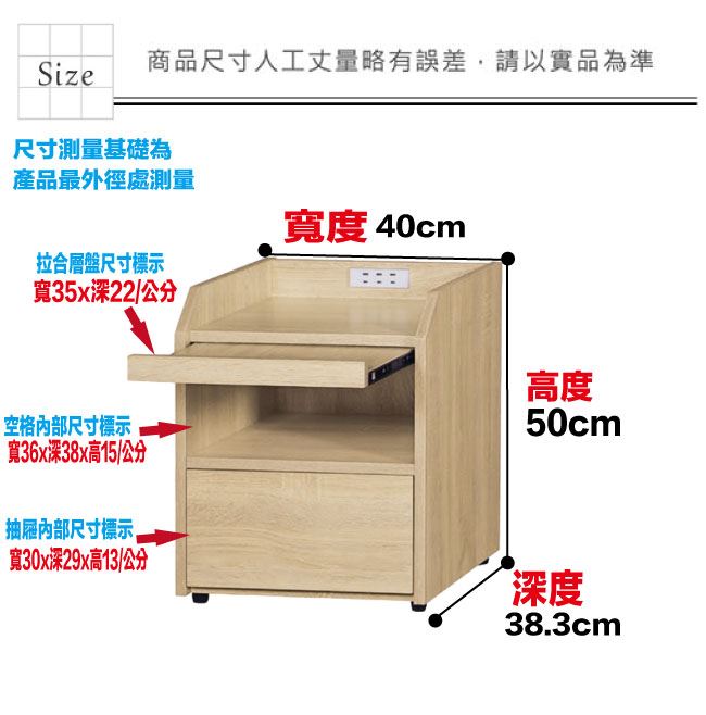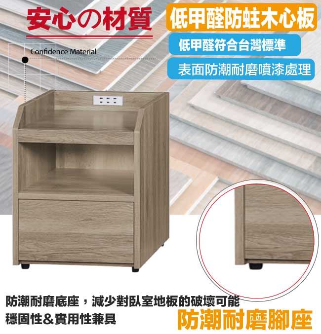 材質 | ◆產品名稱:【綠家居】葛亞瑪1.3尺多功能床頭櫃(三色可選) 尺寸:(寬)40x(深)38.3(高)50/公分 ◆材質: 材質:防蛀木心板+防潮耐磨腳座+五金滑軌結構 噴漆:防潮耐磨噴漆處理 |