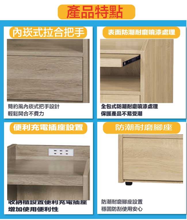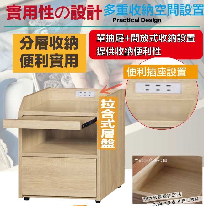【綠家居】葛亞瑪1.3尺多功能床頭櫃(三色可選)
