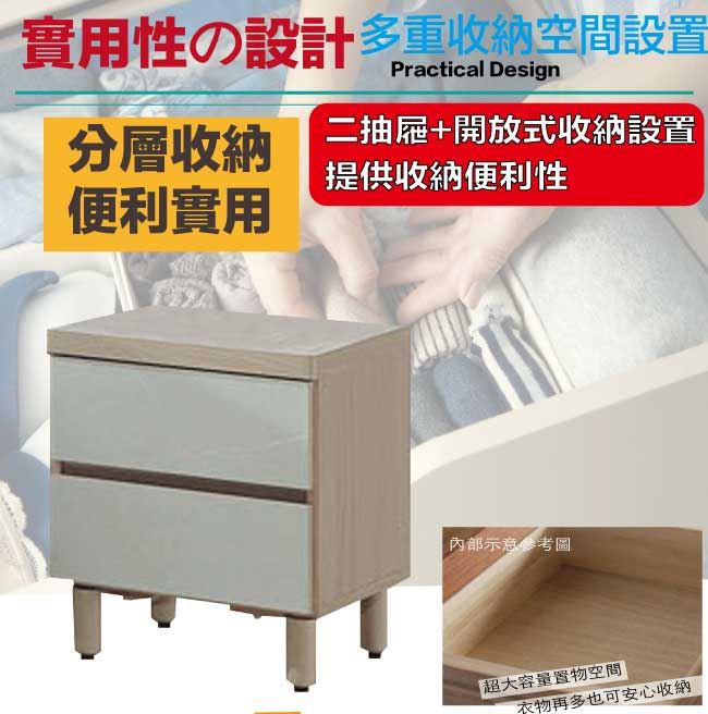 【綠家居】馬蘭1.3尺二抽床頭櫃