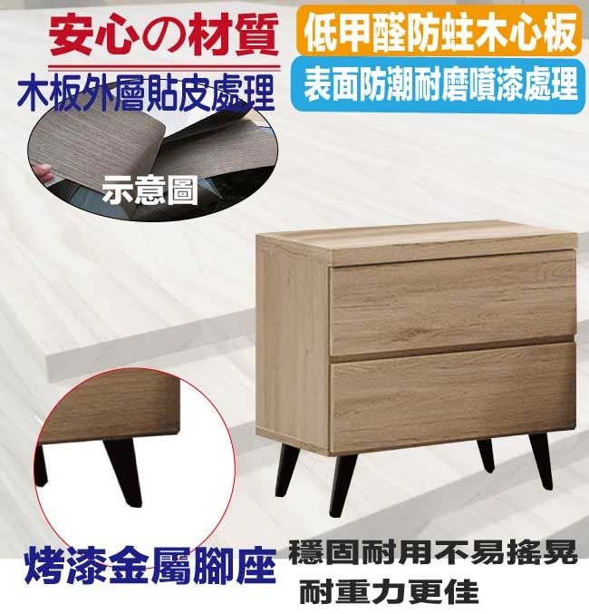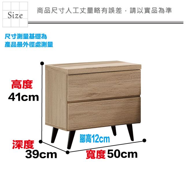 材質 | ◆產品名稱:【綠家居】克提拉1.7尺二抽床頭櫃 尺寸:(寬)50x(深)39x(高)41/公分 ◆材質: 材質:防蛀木心板+五金滑軌結構+烤漆金屬腳座 噴漆:防潮耐磨噴漆處理 |