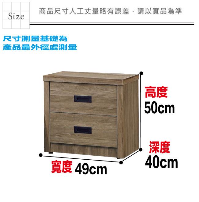 材質 | ◆產品名稱:【綠家居】法澤1.6尺二抽床頭櫃(二色可選) 尺寸:(寬)49x(深)40x(高)50/公分 ◆材質: 材質:防蛀木心板+防潮耐磨底腳座+五金滑軌結構 噴漆:防潮耐磨噴漆處理 |
