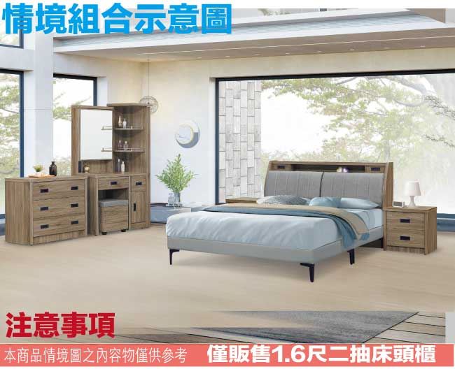 【綠家居】法澤1.6尺二抽床頭櫃(二色可選)