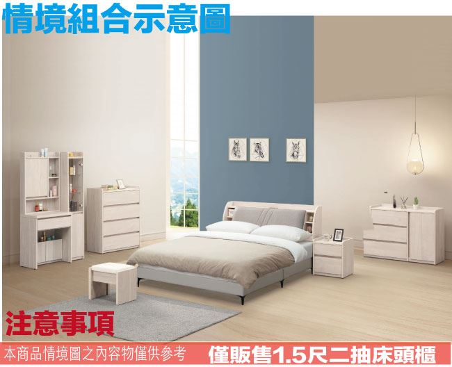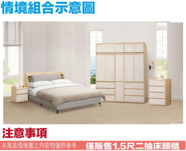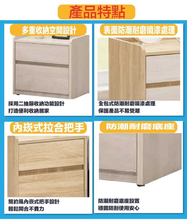 【綠家居】奧蘭1.5尺二抽床頭櫃(四色可選)