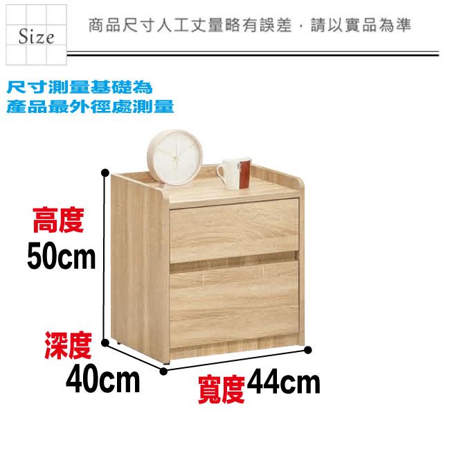 材質 | ◆產品名稱:【綠家居】奧蘭1.5尺二抽床頭櫃(四色可選) 尺寸:(寬)44x(深)40x(高)50/公分 ◆材質: 材質:防蛀木心板+防潮耐磨底腳座+五金滑軌結構 噴漆:防潮耐磨噴漆處理 |