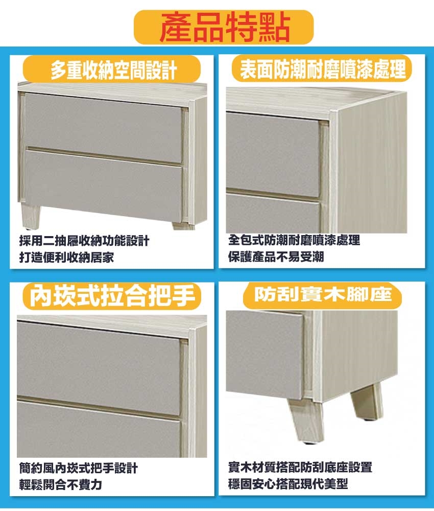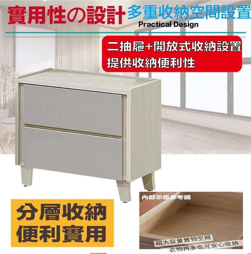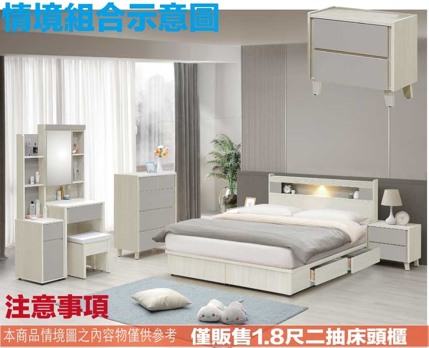 - ◆產品名稱:【綠家居】艾蘿1.8尺二抽床頭櫃