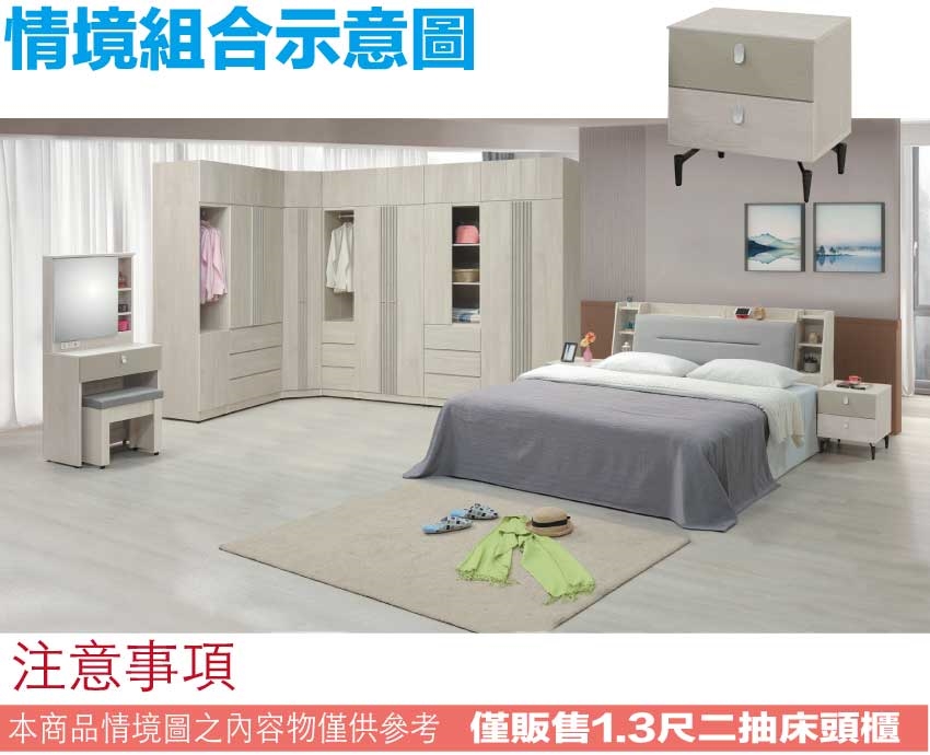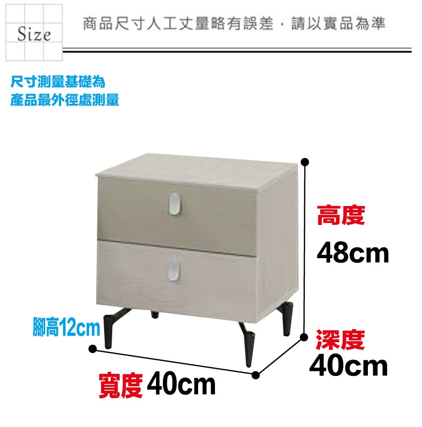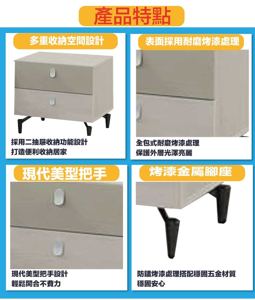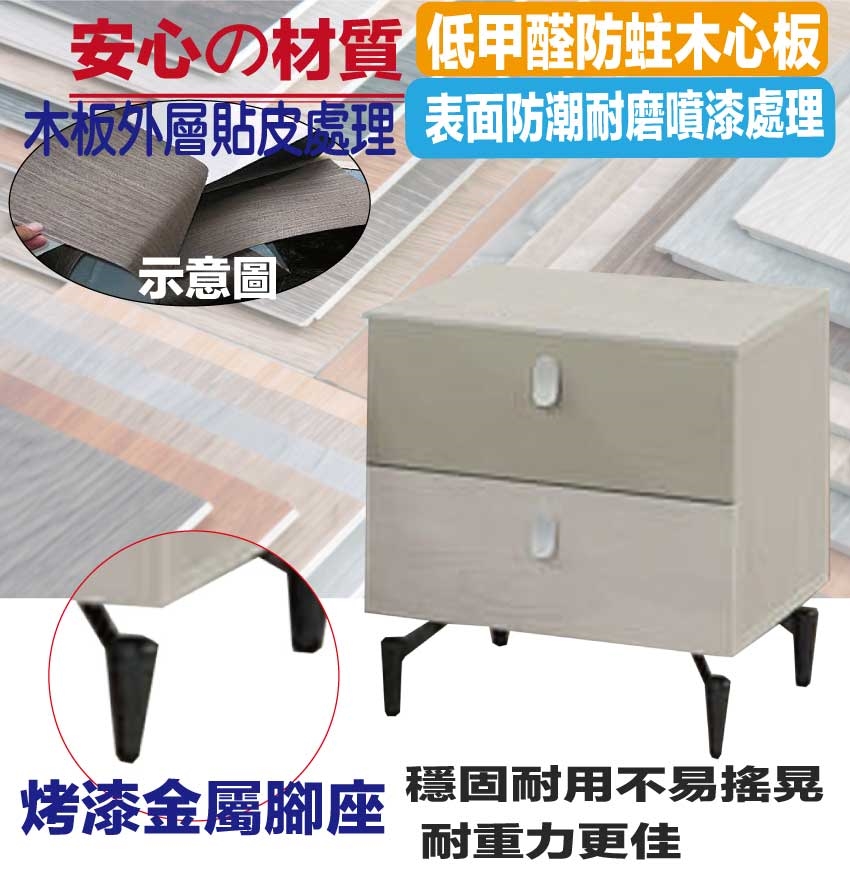 - ◆產品名稱:【綠家居】蒂斯1.3尺二抽床頭櫃