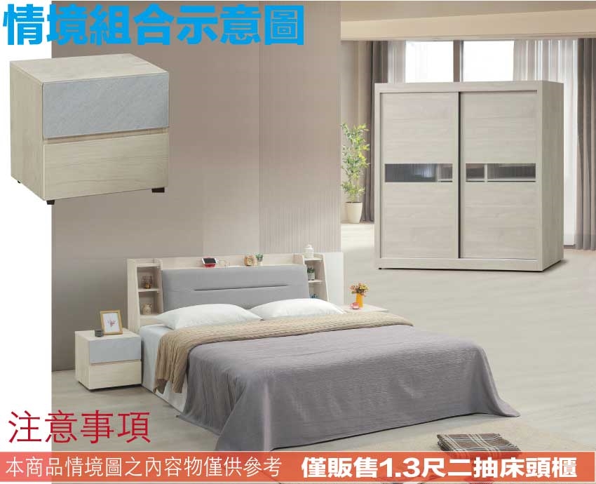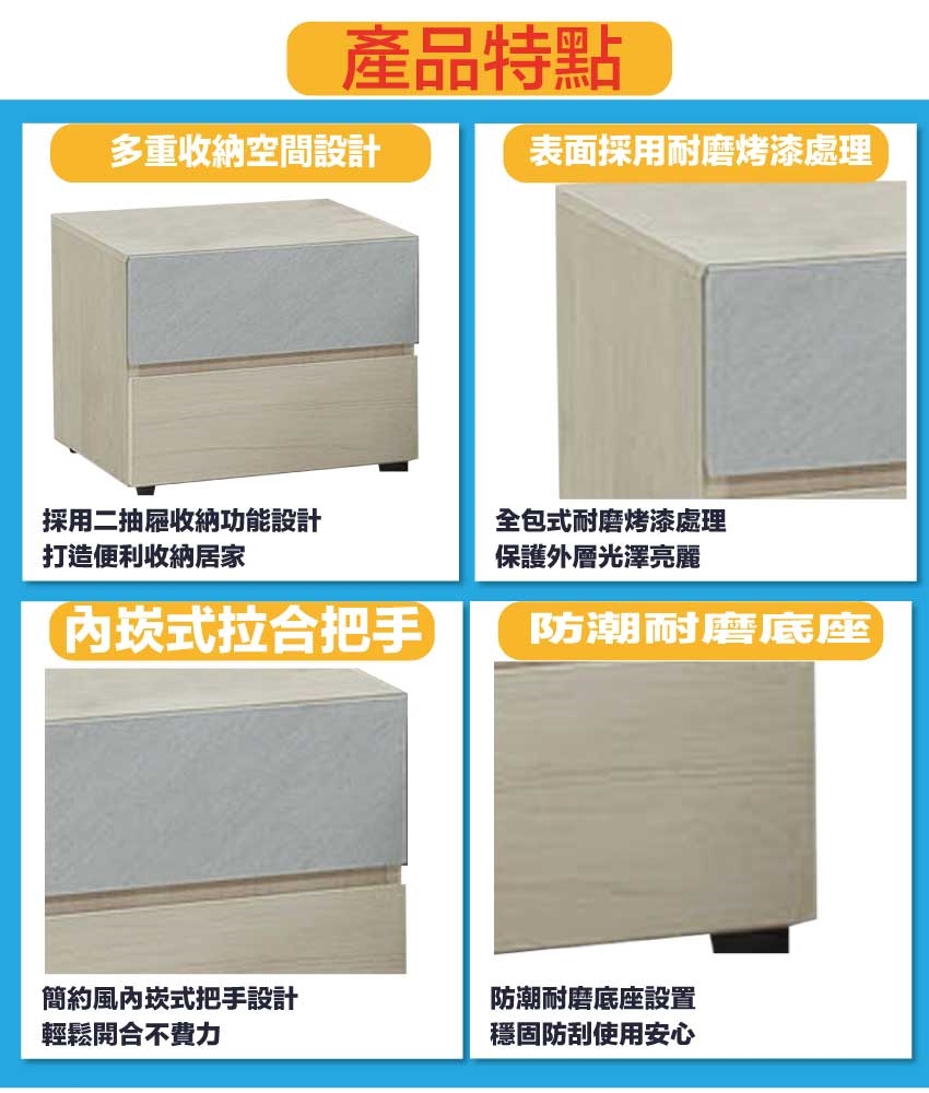 - ◆產品名稱:【綠家居】莫森1.3尺二抽床頭櫃
