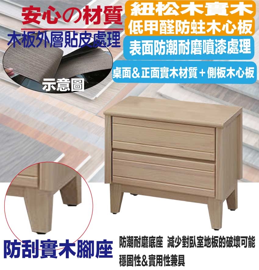 採用紐松木實木+防蛀木心板+防刮實木腳座+五金滑軌結構等安心材質製造