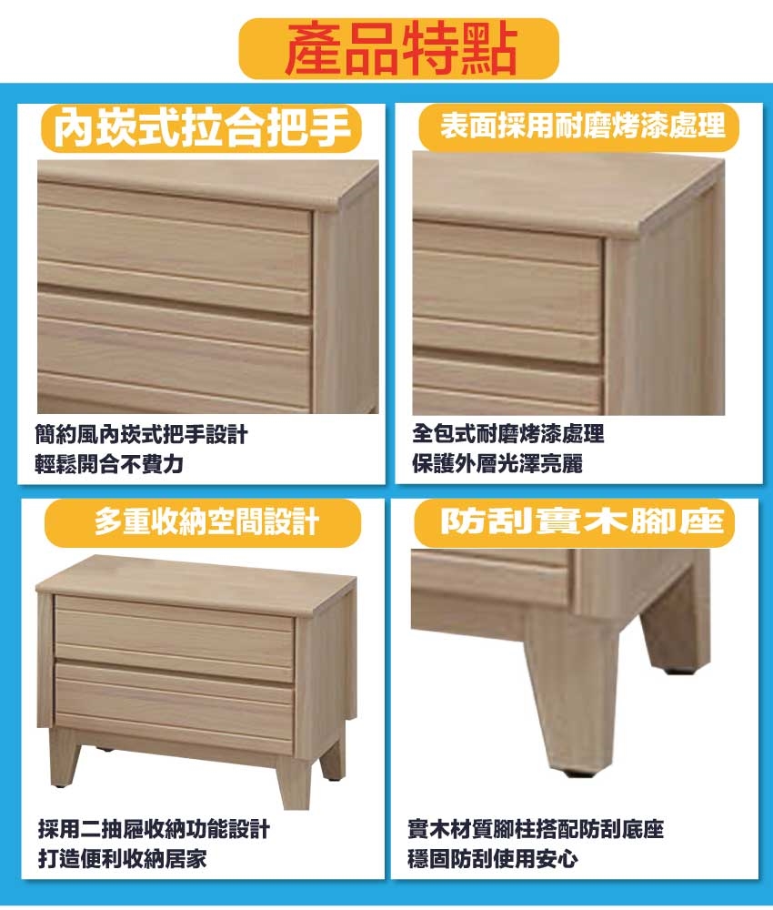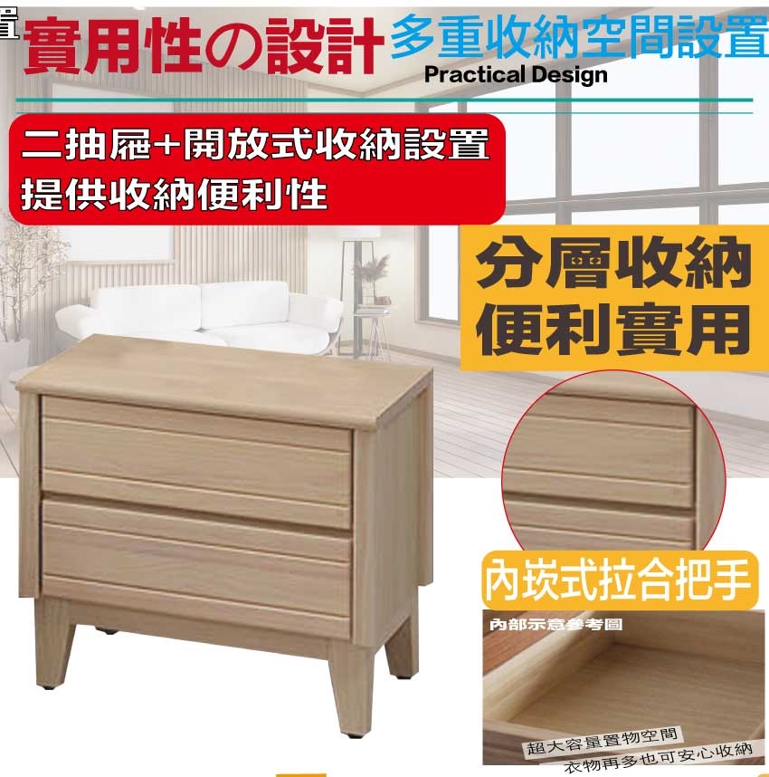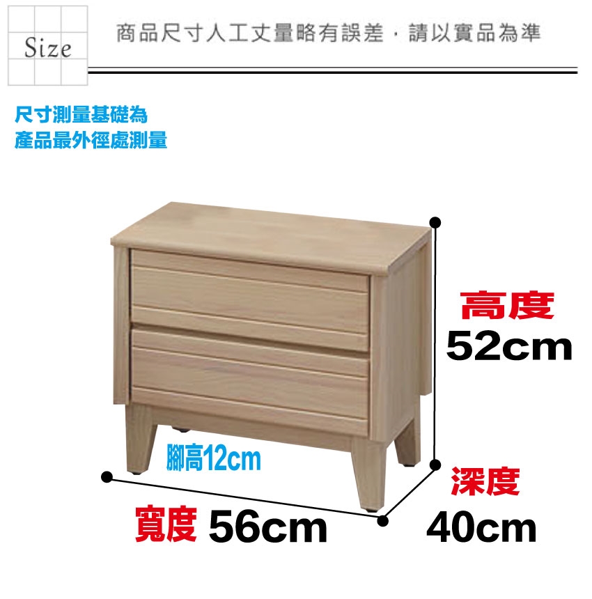 - ◆產品名稱:【綠家居】巴卡1.9尺實木二抽床頭櫃