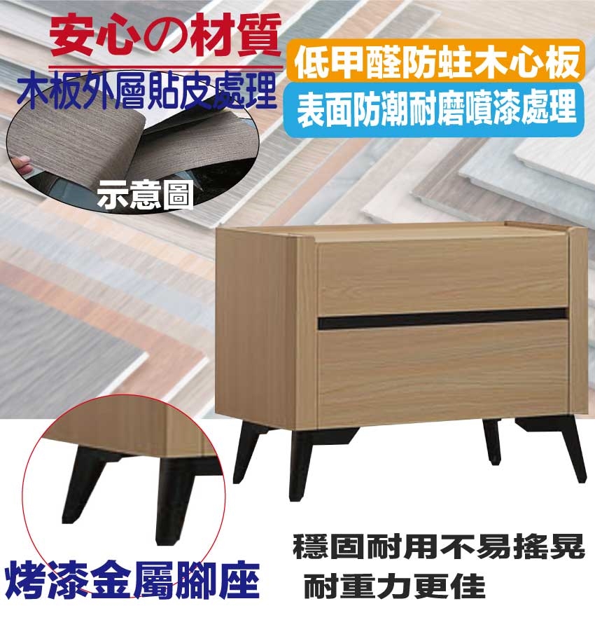採用防蛀木心板+烤漆金屬腳座+五金滑軌結構等安心材質製造