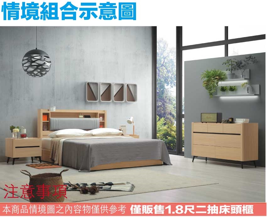 - ◆產品名稱:【綠家居】巴米1.8尺二抽床頭櫃