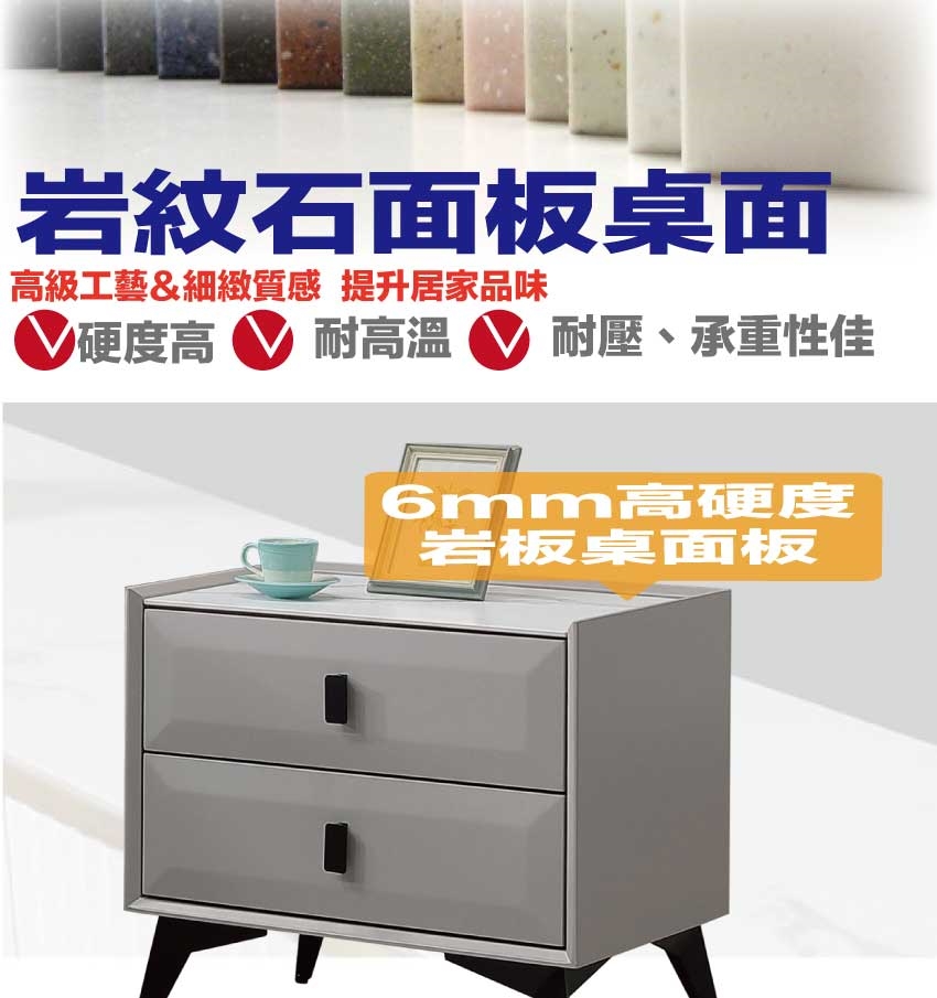 【綠家居】普斯1.7尺二抽岩板床頭櫃