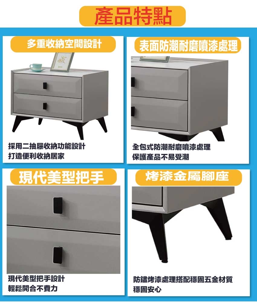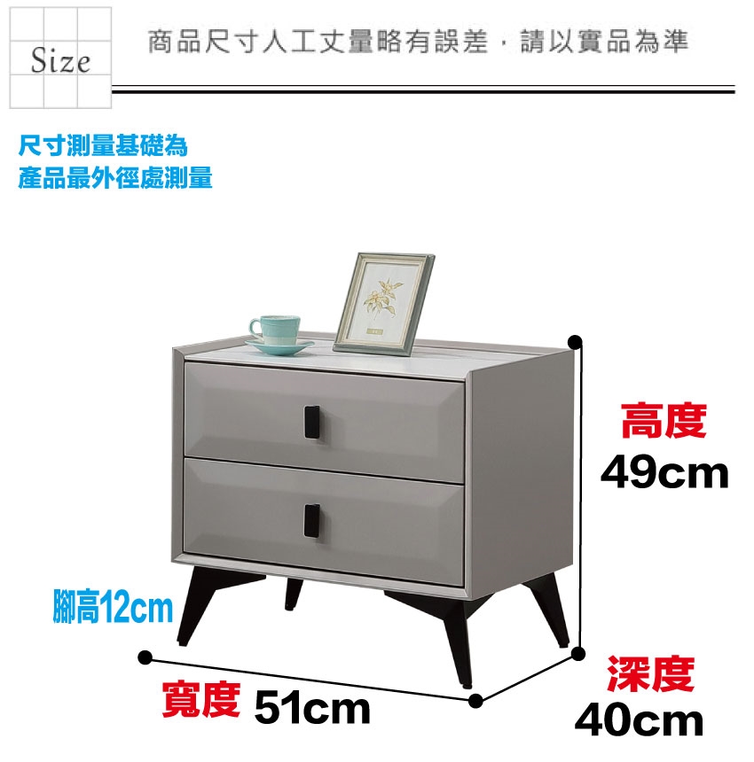 - ◆產品名稱:【綠家居】普斯1.7尺二抽岩板床頭櫃