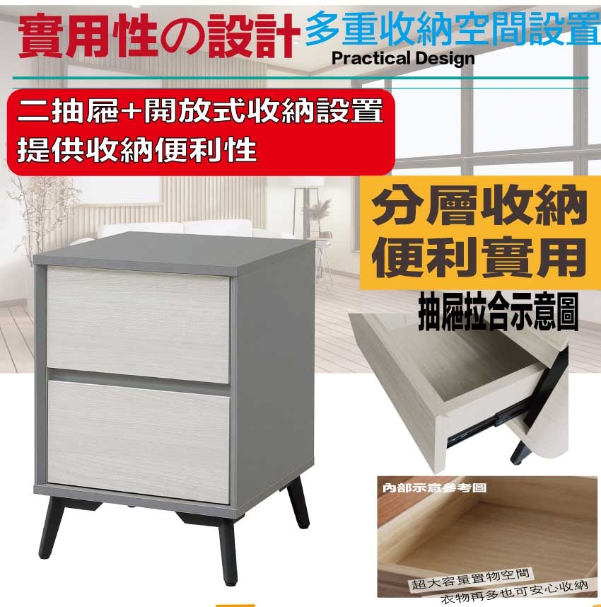 【綠家居】維法1.3尺二抽側邊櫃/收納櫃