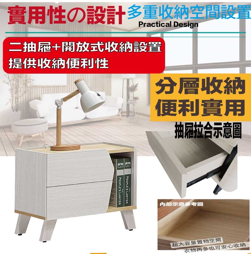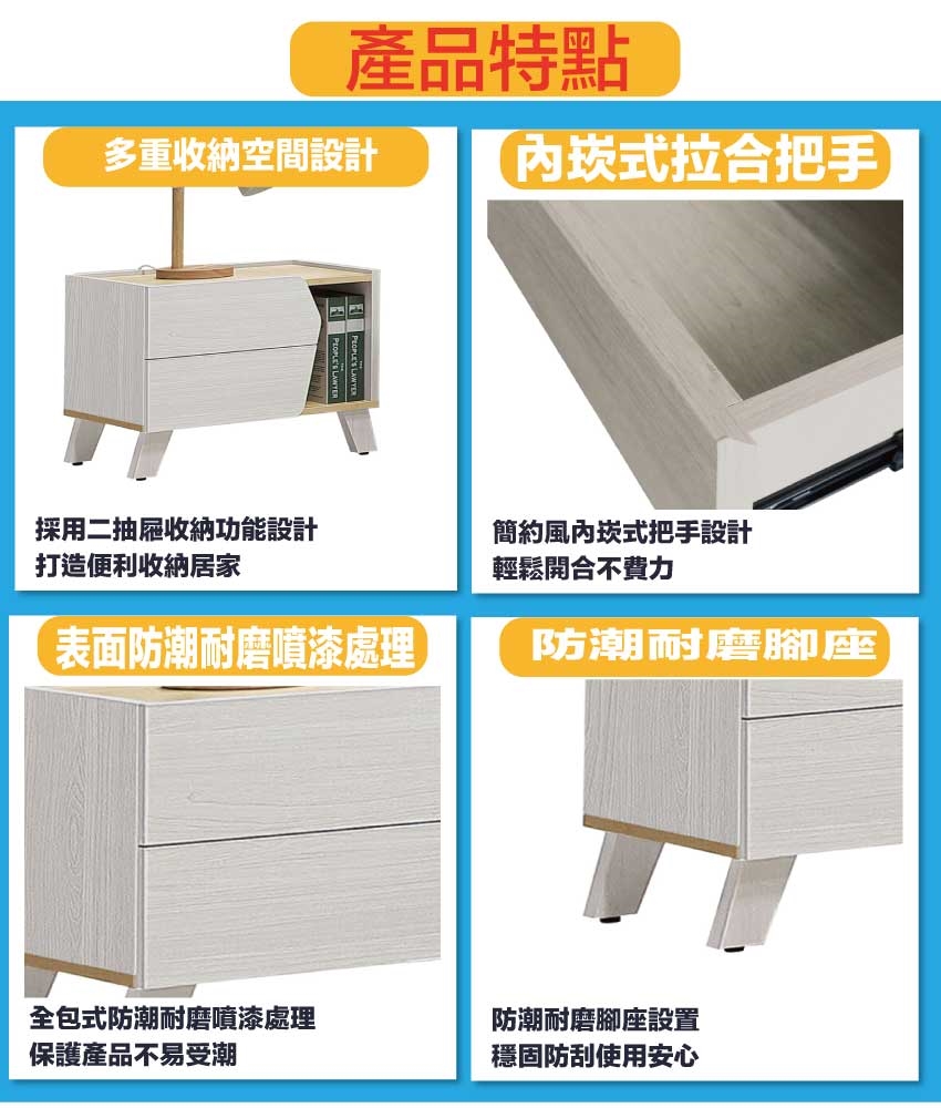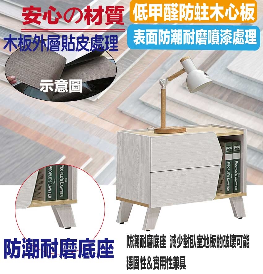 - ◆產品名稱:【綠家居】弗格1.7尺二抽床頭櫃