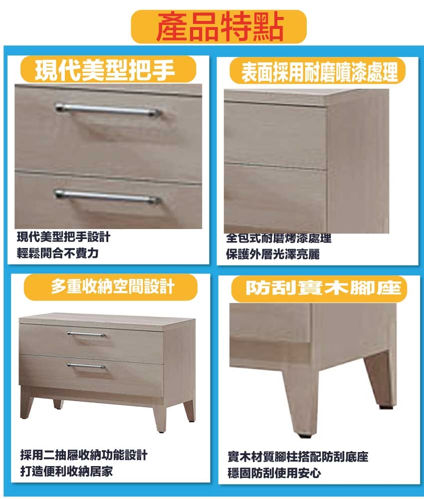 - ◆產品名稱:【綠家居】夏沐1.9尺二抽床頭櫃