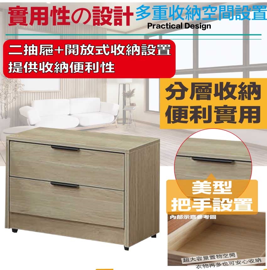 二抽屜+開放層格空間等收納設計