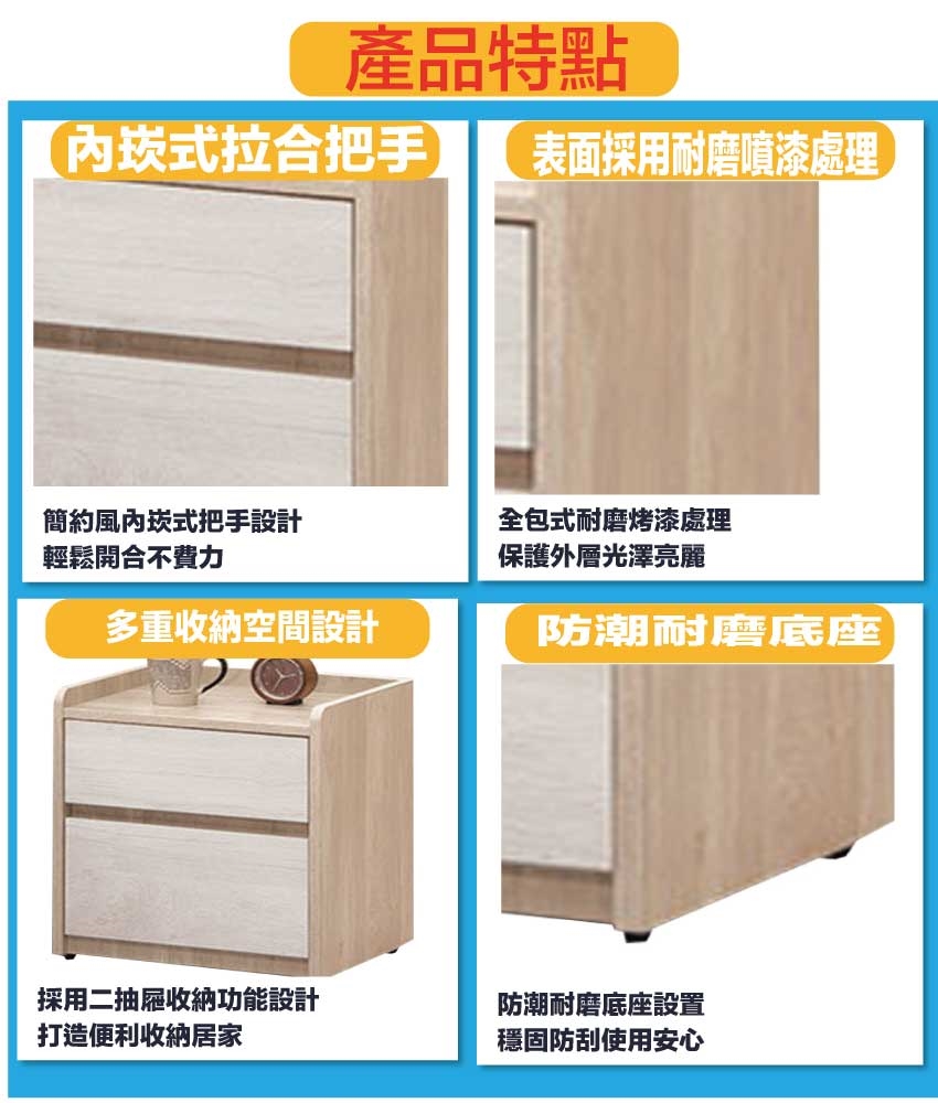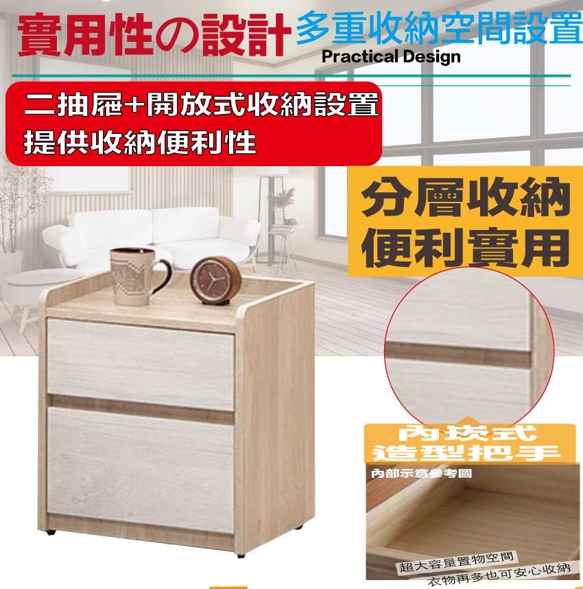 - ◆產品名稱:【綠家居】雷克利雙色1.5尺二抽床頭櫃