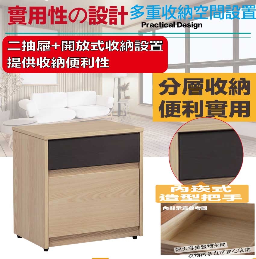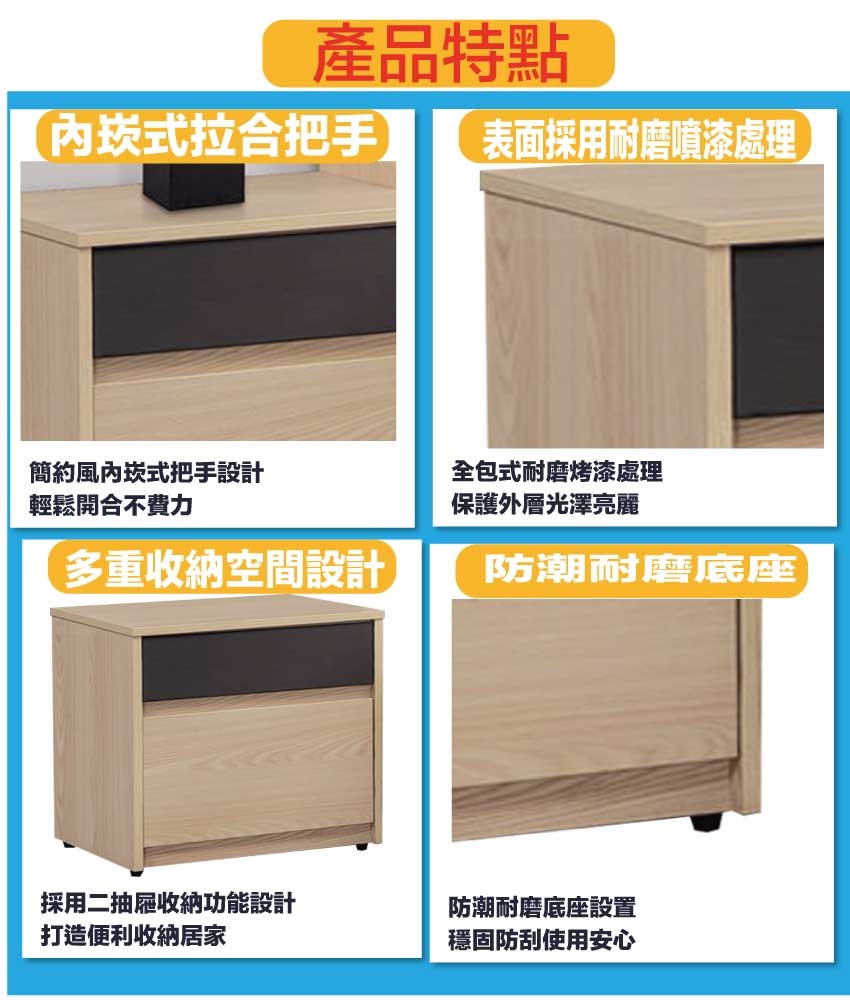 - ◆產品名稱:【綠家居】米雅雙色1.6尺二抽床頭櫃
