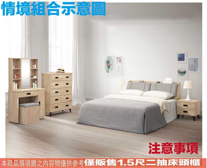 - ◆產品名稱:【綠家居】瑪卡利1.5尺二抽床頭櫃