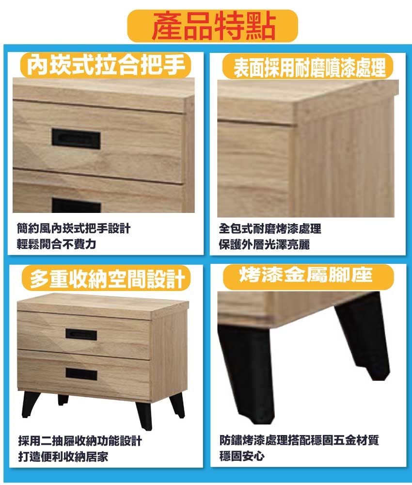 採用防蛀木心板+烤漆金屬腳座+五金滑軌結構等安心材質製造