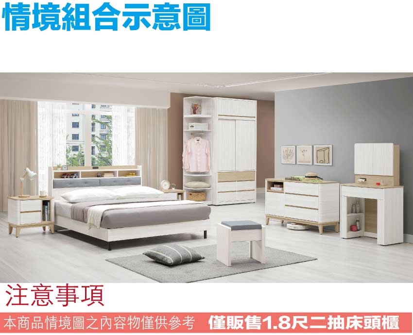 - ◆產品名稱:【綠家居】哈伊1.8尺二抽床頭櫃