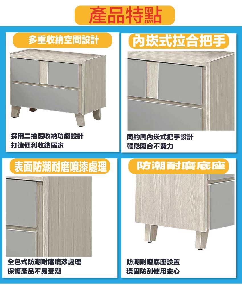 - ◆產品名稱:【綠家居】奇伊1.8尺二抽床頭櫃