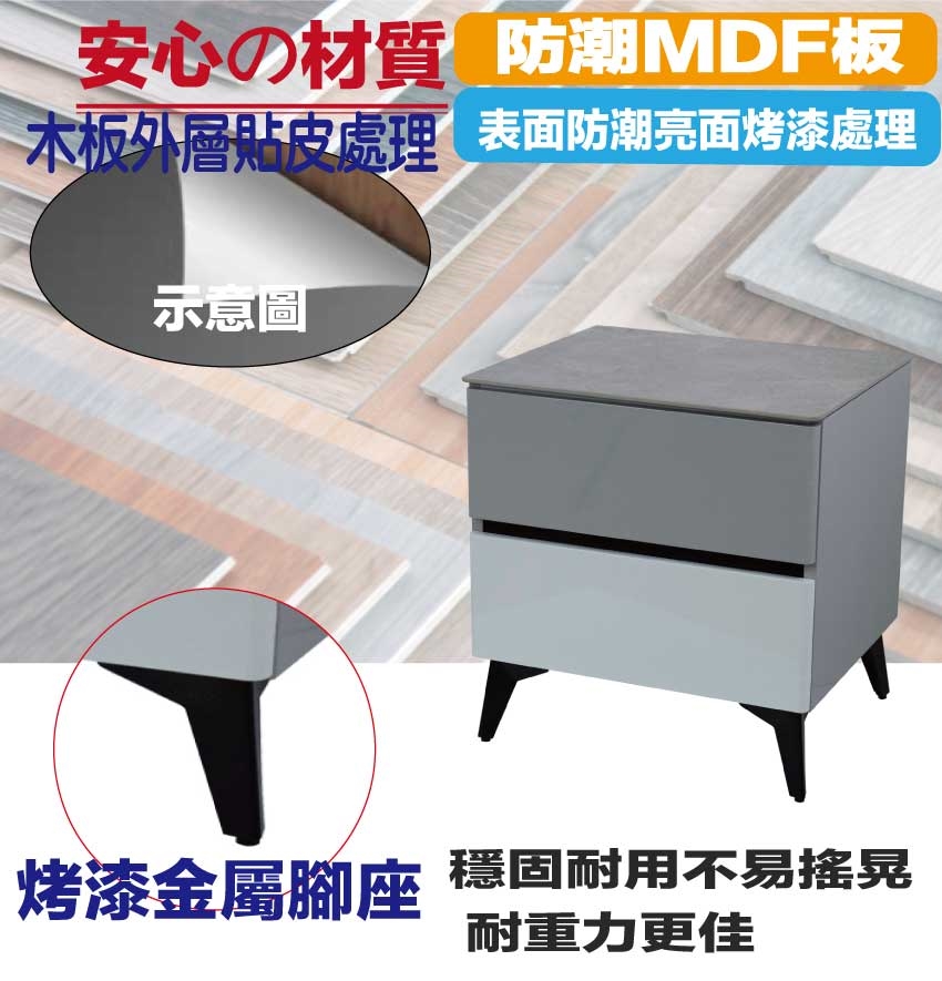 ★偏遠地區需額外加收運費,下標請先問與答詢問★ ★下訂前注意 由於商品流動較快,下訂前請先詢問是否有貨在下訂喔~★ 【綠家居】喬娜1.5尺岩板二抽床頭櫃 現代雙色系+安心材質製造,使用放心+搭配居家更便利,採用防潮MDF板+烤漆鐵製腳座+五金滑軌結構+6mm高硬度岩板桌面板等安心材質製造 ,外層採用防潮亮面烤漆處理搭配二抽屜+開放桌面等收納空間設計,全由專人配送到家,專業安心服務,替你省下更多時間!