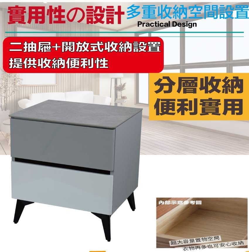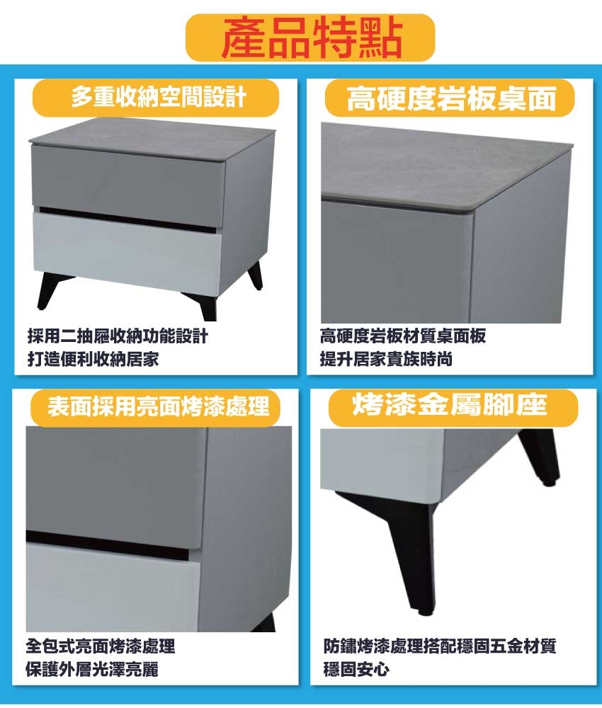 - ◆產品名稱:【綠家居】喬娜1.5尺岩板二抽床頭櫃