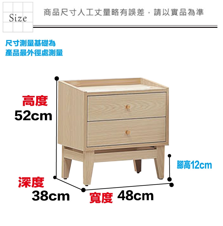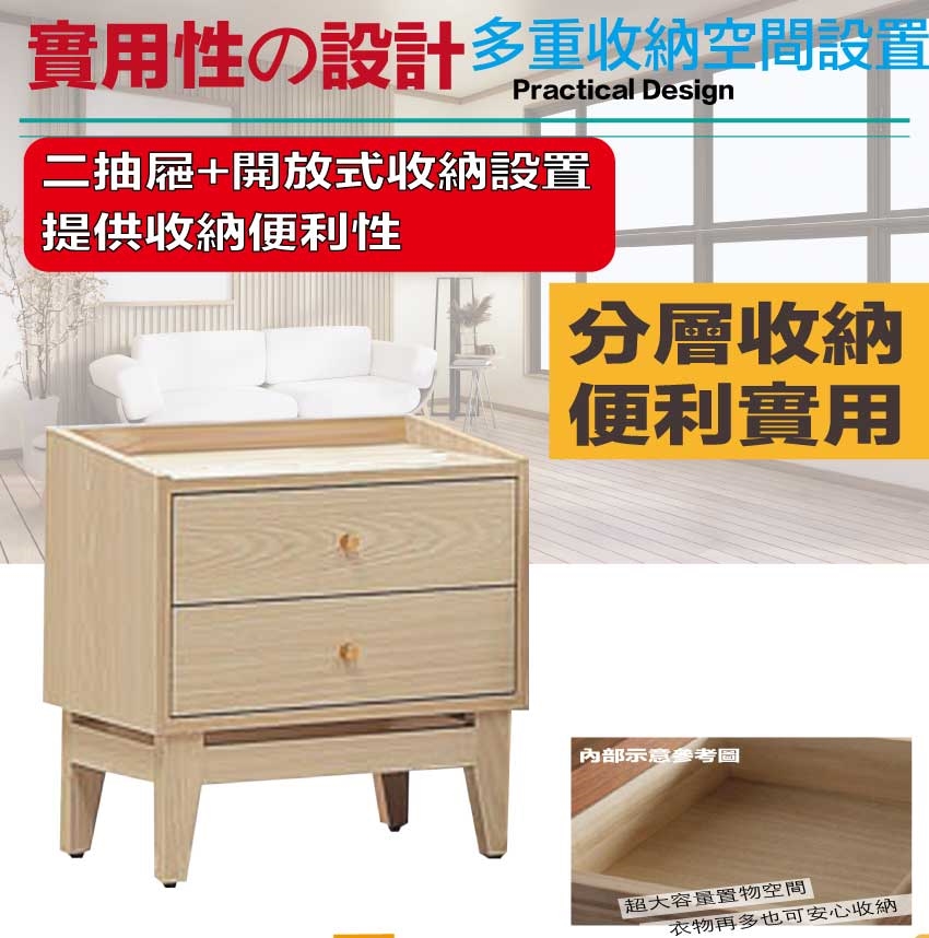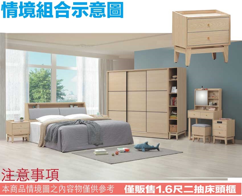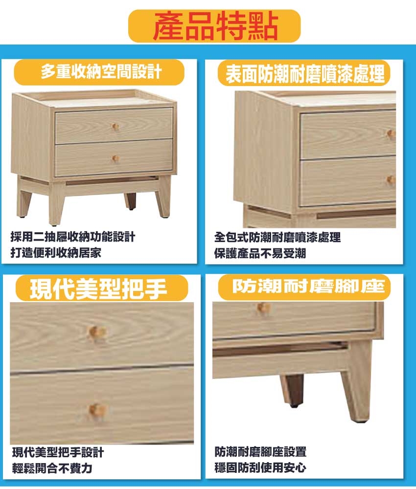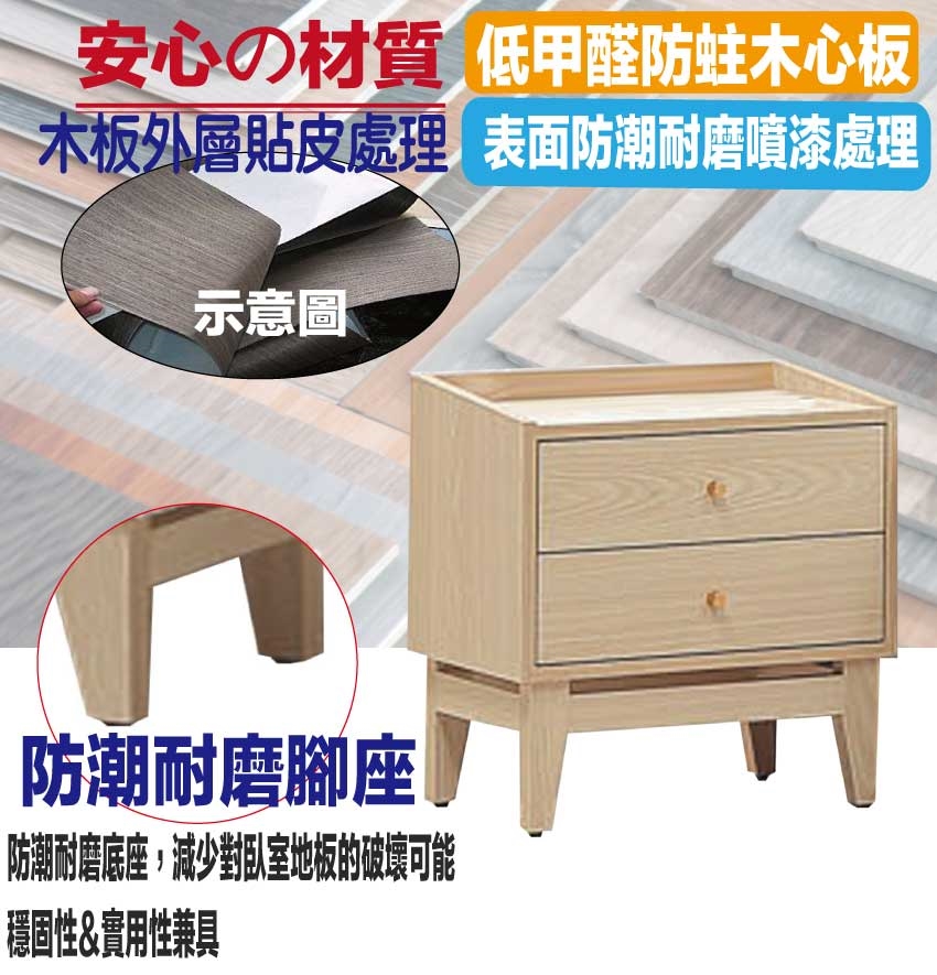 - ◆產品名稱:【綠家居】萬斯1.6尺二抽床頭櫃