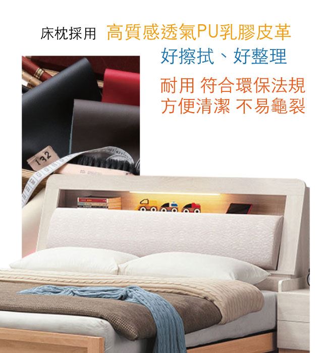 - 可掀式床枕板+開放&隱藏式收納