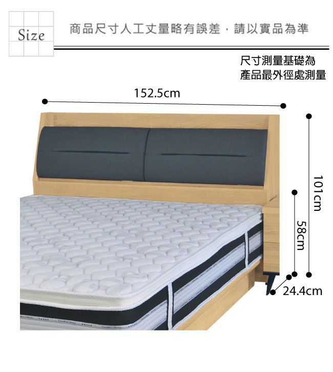 材質 | ◆產品名稱: 【綠家居】芬米 時尚5尺雙人貓抓皮革床頭箱(四色可選+不含床底+不含床墊) 床頭箱尺寸:(寬)152.5x(深)24.4(高)101/公分 ◆材質: 材質:防蛀木心板+耐刮貓抓皮革+高密度泡棉 噴漆:防潮耐磨噴漆處理